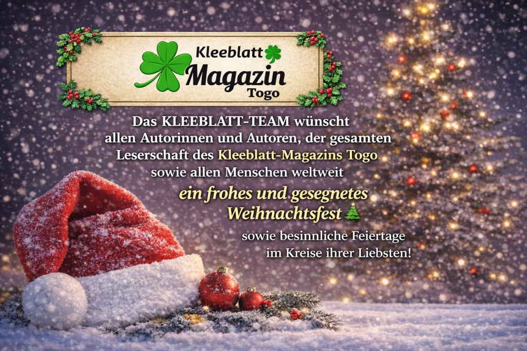 In dieser Zeit der Besinnung, des Teilens und der Hoffnung möchte das KLEEBLATT-TEAM allen Autorinnen und Autoren sowie allen Leserinnen und Lesern des Kleeblatt-Magazins Togo seinen herzlichen Dank aussprechen.